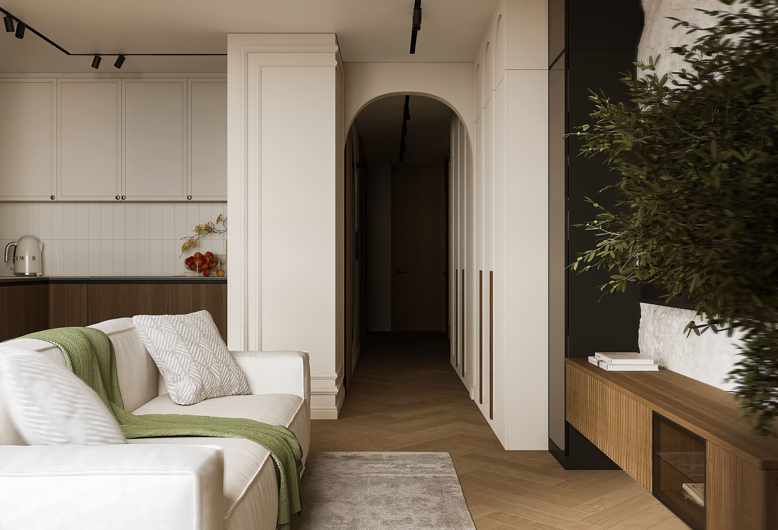 Перед нами стояла задача объединить несколько стилей в одном пространстве: минимализм, бохо, элементы лофта, контемпорари, а также лёгкий привкус прованса.